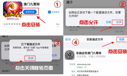 1、点击 「免费安装」,下载配置描述文件, 安装配置描述文件